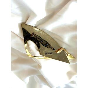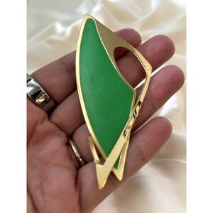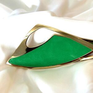 Vintage Modernist Brooch Green Enamel Gold Tone Berebi