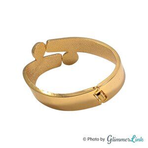 Vintage Modernist Clear Rhinestone Accents Gold Tone Hinged Cuff Bracelet