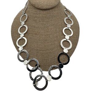 Vintage Modernist Silver Tone Necklace Rough & Smooth Textures Open Link Chain