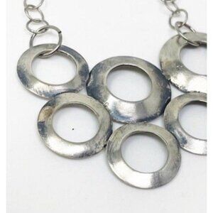 Vintage Modernist Sterling Silver 925 Circle Pendant Necklace Geometric Chain