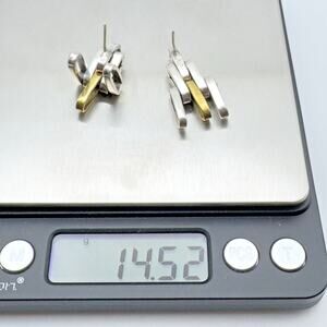 Vintage Modernist Sterling Silver Brass Earrings Industrial Tank Track Unisex