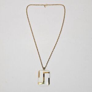 Vintage Modernist White Enamel Gold Tone Signed Crown Trifari Pendant Necklace