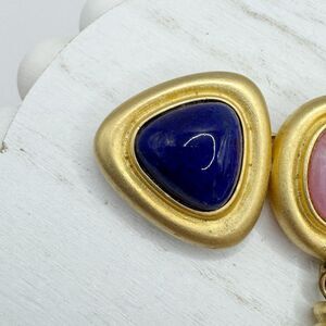 Pink and navy blue faux Gripoix style lucite brooch pin