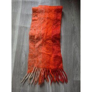 Vintage Mohair 100% Fringe Scarf Orange & Beige Made In Western Germany