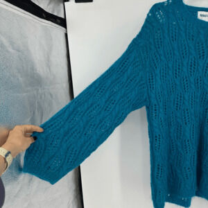 Vintage Mohair Women’s Sweater Size L Open Knit Crew Neck Blue Balloon Sleeve