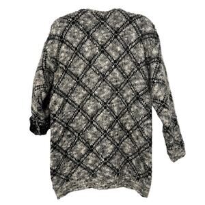 Vintage Mohair Wool Chunky Knit Grandpa Cardigan Sweater Black White Size Small