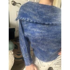 Vintage Mohair Wool Sweater blue collared Bohemian fuzzy warm bat wing sleeve
