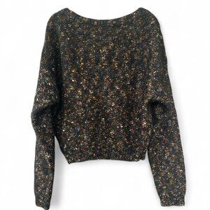 mohair, mohair blend, boucle knit, textured knit, confetti knit, fuzzy sweater, chunky knit, slouchy knit, vintage cardigan, vintage sweater, 90s vintage, 80s vintage, grandmacore, cozy cottagecore, french girl style, artsy boho, indi aesthetic, eclectic style, minimalist wardrobe, cropped cardigan, slouchy fit, oversized, black multicolor, fall knit, winter knit