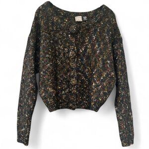 Vintage Mohair-Blend Confetti Knit Cardigan Black and Multi Boucle Textured S M