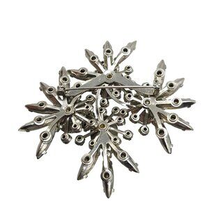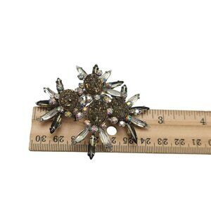 Vintage Molded Black Lava Stone Brooch Navettes Rhinestone Unsigned Judy Lee