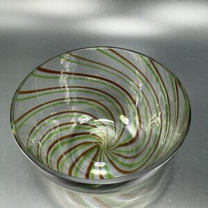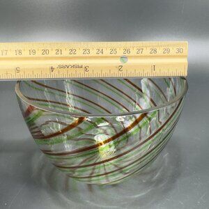 Vintage Molded Glass Dish Bowl With Green Red Swirls Clear Glass Container Bowl