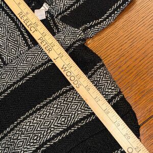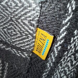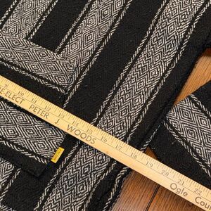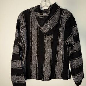 Cozy, classic Baja hoodie from Molina, made in Mexico. Features a black-and-white geometric woven pattern, soft mid-weight fabric, kangaroo pocket, and hood. This style is popular for festival wear, skater/surfer fits, boho streetwear, and 90s grunge. Unisex.