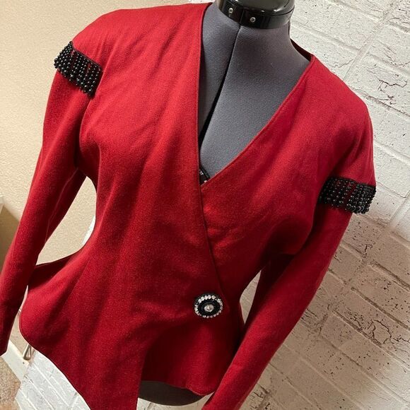 Vintage Mon-Liz Paris Red Beaded 80's Wool Jacket Small