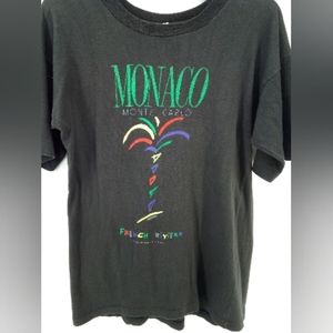 Vintage Monaco French Riviera Monte Carlo by Stepha Black Tourist Vacation Souvenir Shirt M