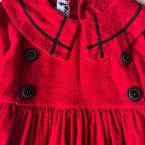 • Bold red corduroy fabric (100% cotton) with 4 black buttons down the front