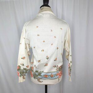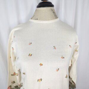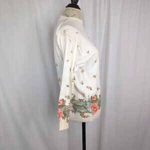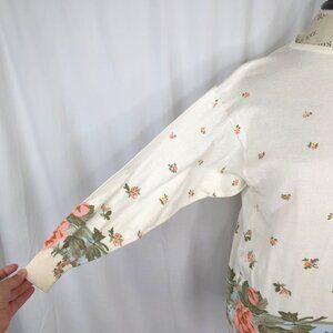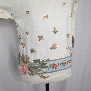 Vintage 1980s Mondi white knit sweater with pink and green floral print