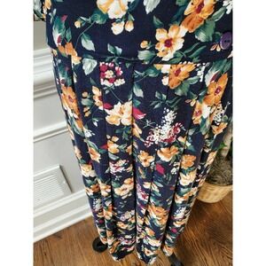 Vintage Mondo Blue Floral V-Neck Long Sleeve Casual Knee Length Dress Size 2X