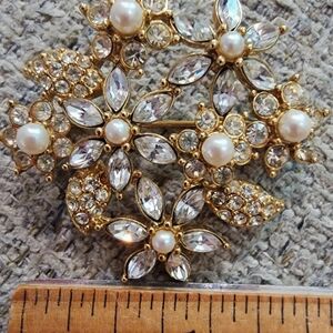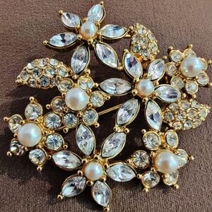 Tags: #Monet #VintageJewelry #FloralBrooch #Rhinestone #Pearl #GoldTone #StatementPiece #VintageFashion #Collectible #RetroChic #VtgBrch #Sale