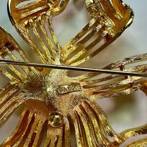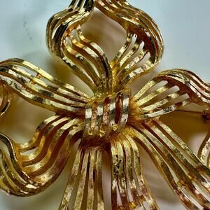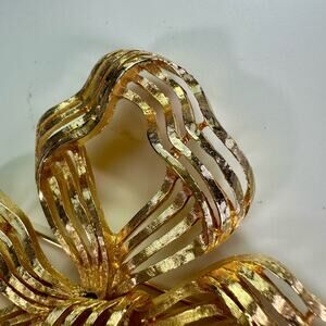 Vintage Monet 3” Goldtone Metal Ribbon Brooch Openwork Pin Christmas Holidays