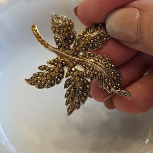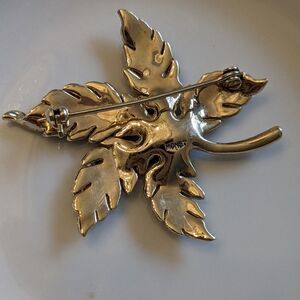 Add a touch of vintage elegance to your collection with this exquisite Vintage Monet gold tone leaf pin. Crafted with intricate detail and timeless style, this pin is a true testament to the sophistication of the era. The gold tone finish exudes a classic and luxurious appeal, making it a versatile accessory for any occasion. The delicate leaf design adds a touch of nature-inspired charm, perfect for adding a subtle yet elegant accent to your ensemble. The high-quality construction and durable materials ensure long-lasting wear, making this pin a cherished piece that can be passed down for generations. The secure clasp ensures that it stays in place throughout the day, allowing you to wear it with confidence and grace. Whether you're adding it to your lapel for a touch of sophistication or incorporating it into a vintage-inspired ensemble, this Monet leaf pin effortlessly embodies timeless style and grace. Embrace the beauty and craftsmanship of this vintage gold tone leaf pin and make a statement that reflects your refined taste and appreciation for classic elegance.