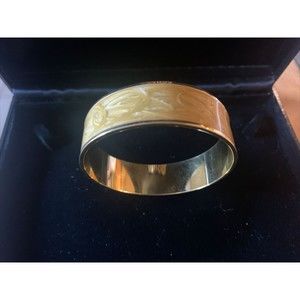Vintage Monet Bangle Bracelet -Gold-Toned 3/4" wide, swirly design