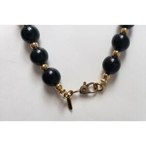 Vintage Monet Black and Gold Toned Beaded Fashion/Costume Necklace