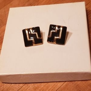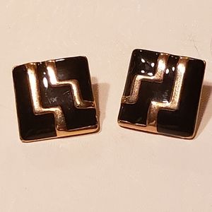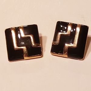 Black and Gold tone geometric enamel earrings. EUC, possibly new. About 1" square. Striking!