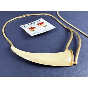 Vintage 80s Monet Gold & Cream Statement Necklace