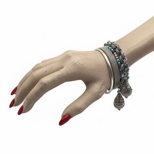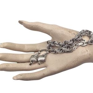 Vintage Monet Bolero Bracelet, Silver Tone Charm Bracelet, Dangling Textured Bal