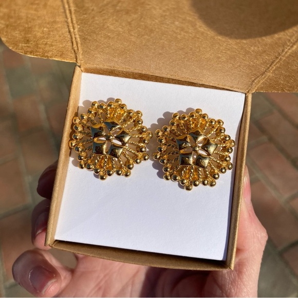 Vintage Monet Bright Gold Tone Starburst Clip On Earrings