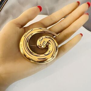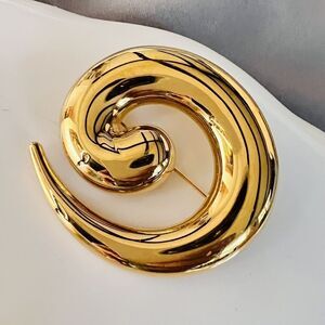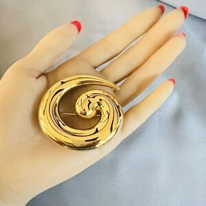 Vintage Monet Brooch Large Polished Shiny Gold Toned Swirl Abstract Costume 1142