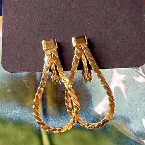 Vintage Monet Chain Hoop Clip On Earrings in Goldtone EXCELLENT