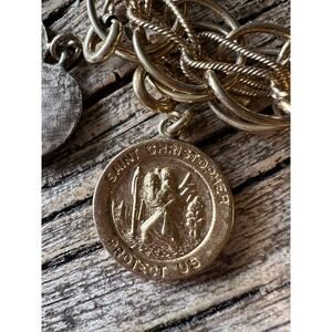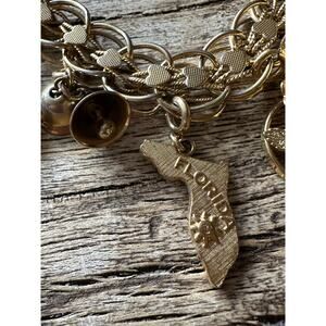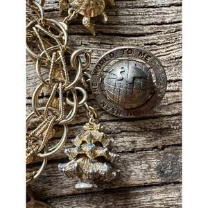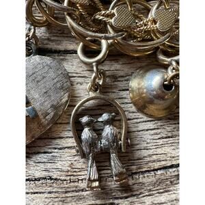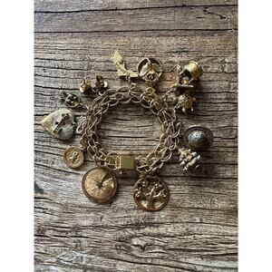Vintage Monet Charm Bracelet Double Link Gold plated 12 Charms 7.5”