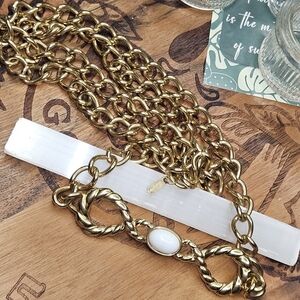 Vintage Monet Chunky Gold Chain Costume Statement Long Necklace White Cabochon. Add some elegance to any outfit. 32 in chain.