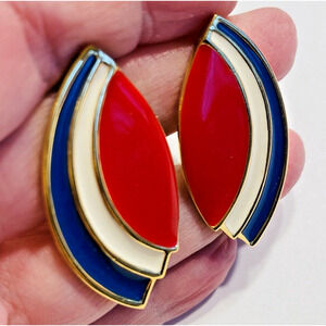 Vintage Monet Clip On Earrings Patriotic Mod 1970's Red White & Blue Jewelry