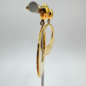 Vintage Monet Cream Enamel Hoop Dangle Earrings Big Bold Chic 80s 90s Runway