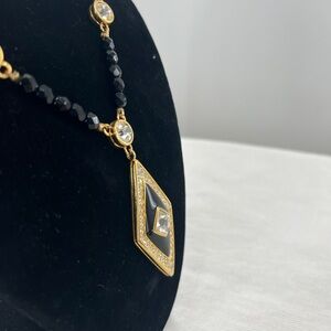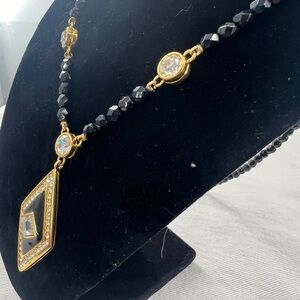 Vintage Monet Diamond Shape Pendant with AB beads and rhinestones