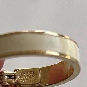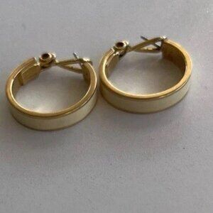 Vintage Monet Earrings Cream Enamel HOOP Gold Tone Pierced Women’s 1” Western