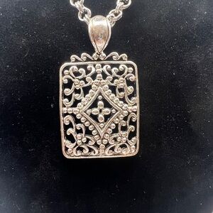 Vintage Monet Filigree silver tone pendant chain and earrings