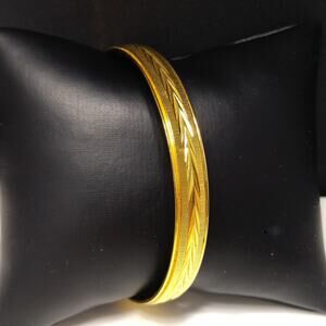 *Description: This is a great Monet gold plated bangle bracelet with a wheat design down the middle with brushed gold on each side from the 1960s. The inside of the bracelet is stamped Monet with a copyright symbol. I tested the surface and it tested at 10K gold surface metal. This is a beautiful bracelet which would be a great addition to your vintage jewelry collection or make a great vintage gift!