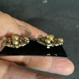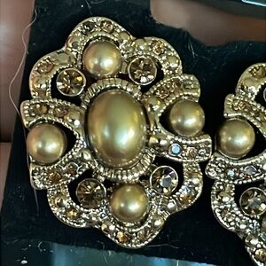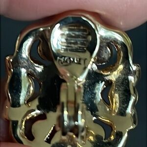 Elegant vintage Monet earrings. Intricate gold design with pearl accents. Perfect for special occasions.