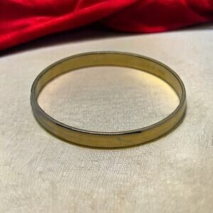 Classic vintage Monet bangle bracelet from the 1980s featuring a timeless minimalist design. This sleek gold tone bracelet offers versatile styling potential for both casual and dressy looks. The simple, clean lines and high-quality Monet craftsmanship make this piece a wardrobe staple.