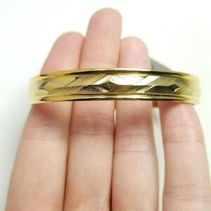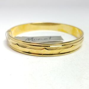 Vintage Monet Gold Tone Bangle Bracelet, Etched Design, Hang Tag, Estate