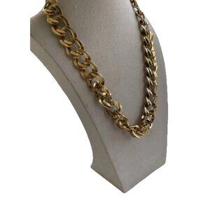 Elevate your accessory collection with the timeless elegance of the Vintage Monet Gold Tone Chunky Flat Double Curb Link Chain Necklace. This 20-inch statement piece showcases a classic gold hue, perfectly capturing the essence of sophistication. The robust yellow gold plating ensures durability, while the curb link design adds a touch of luxury to any ensemble.