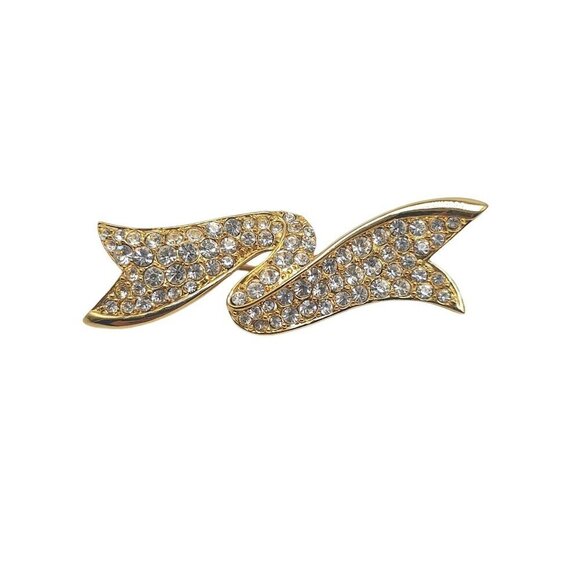 Add a touch of vintage glamour to your outfit. This gold tone rhinestone bow pin brooch sparkles beautifully, perfect for elevating your style.