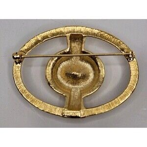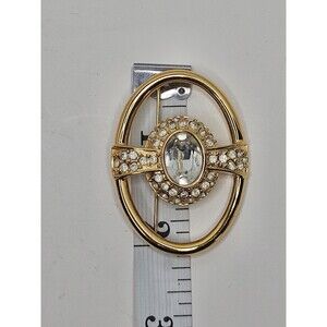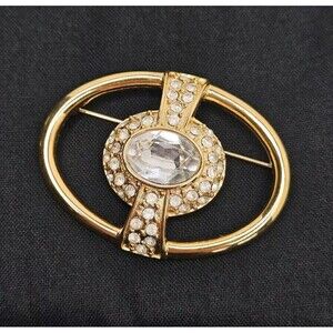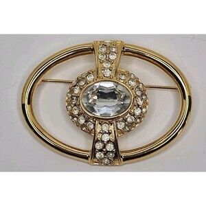 Vintage Monet Gold Tone Crystal Rhinestone Deco Style Brooch 1980s