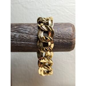 Vintage Monet Gold Tone Curb Double Link Bracelet W/ Fold Over Clasp