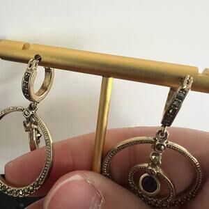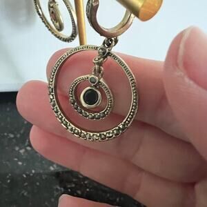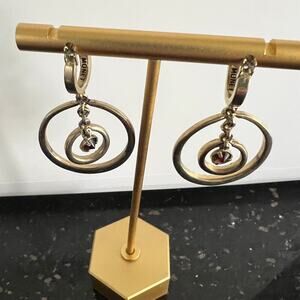 Vintage Monet Gold Tone Jewel Saddle Back Concentric Circle Dangle Earrings