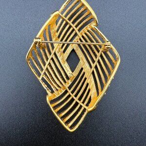 This vintage Monet brooch features an elegant geometric, textured design with a gold-tone finish. A timeless Art Deco-inspired accessory crafted with the signature Monet refinement.