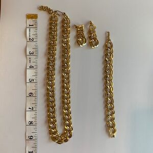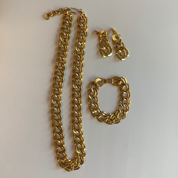 Three piece vintage gold tone chain Monet set: necklace, earrings, bracelet. In very good condition.